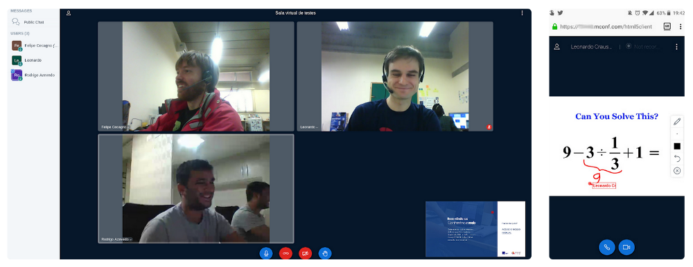 Foi bastante complexo. O Android ainda estava começando, criar aplicações de áudio e vídeo, que utilizassem a câmera e o microfone do dispositivo era muito complicado. Depois de alguns meses chegamos à primeira versão da aplicação, que divulgamos na lista de e-mails de desenvolvedores do BigBlueButton.