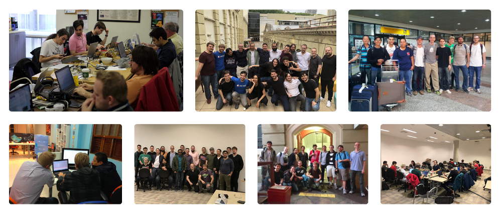 O time de desenvolvedores que participa desses eventos não é só formado pelas equipes do Mconf e BigBlueButton (através da Blindside Networks). Outras empresas e instituições também participam. As principais são: iMDT, Seneca College, HostBBB, iCES Corporation e Riadvice.