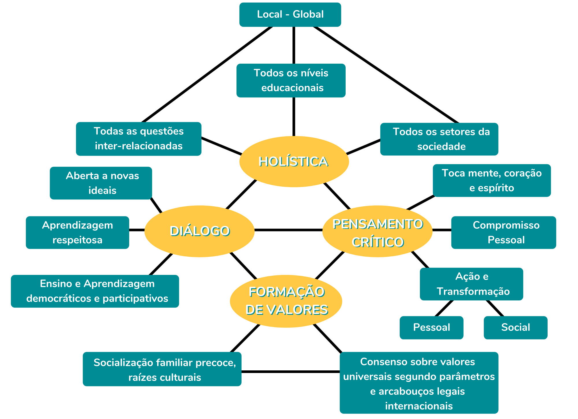 Se formos analisar o diagrama dos princípios da Cidadania Global observaremos que a maioria dos tópicos se destina as competências e habilidades do século XXI