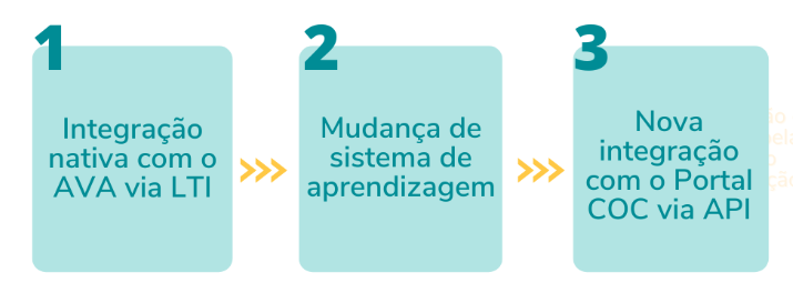 Até o final do ano passado, o COC utilizava o Elos integrado a um Ambiente Virtual de Aprendizagem e a integração era feita via LTI (Learning Tools Interoperability) - que oferece a interface de agendamento e o acesso às salas virtuais através do próprio AVA. A partir da mudança de sistema, surgiu a necessidade de pensarmos em uma nova alternativa de integração, que fornecesse às escolas a mesma qualidade que já estavam acostumadas, antes do final do período de férias escolares.