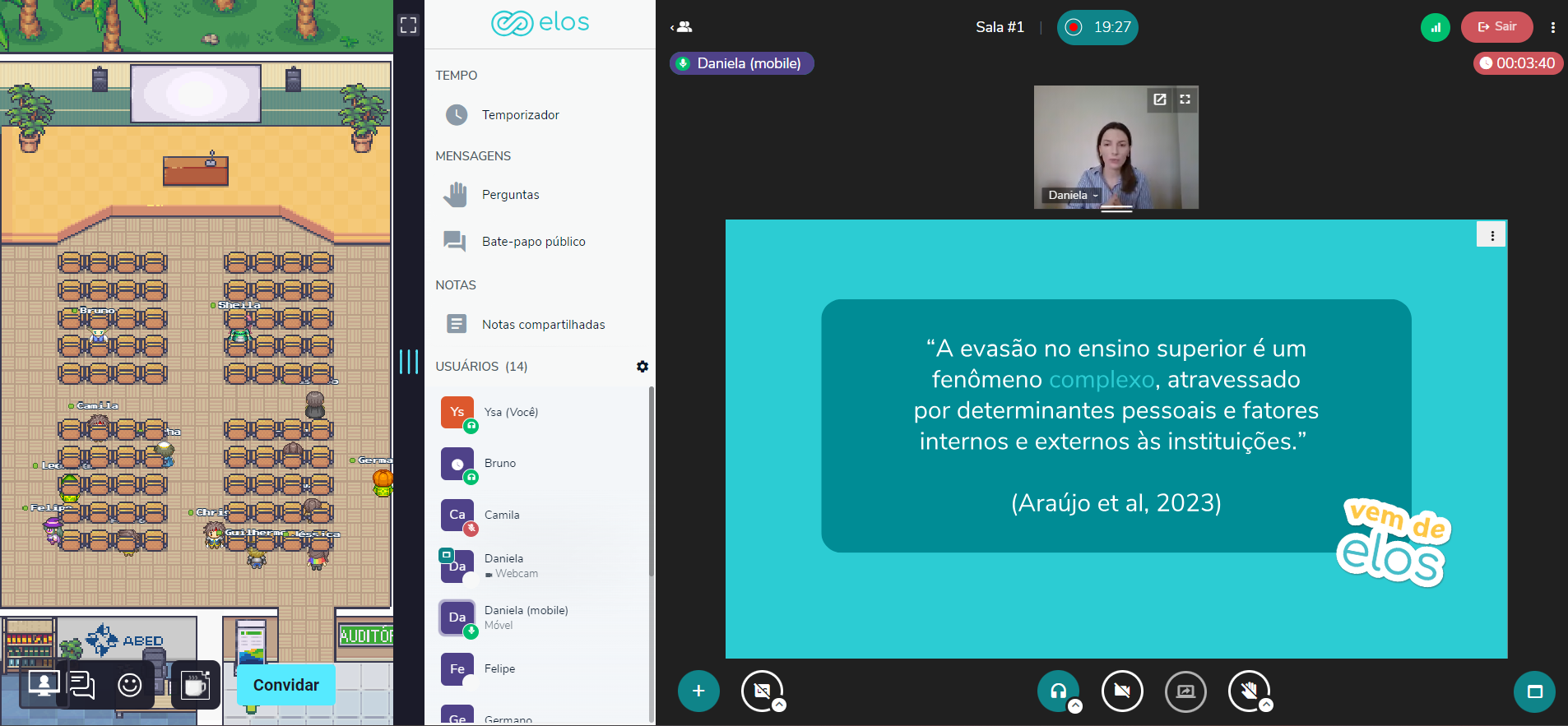 Assim surge o Elos imersivo, desenvolvido em parceria com o WorkAdventure e a B42, para proporcionar uma experiência de aprendizagem que une o síncrono com o assíncrono de forma interativa, lúdica e gamificada.