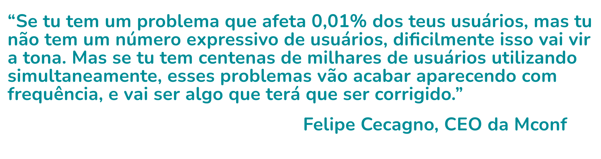 Cecagno complementou a fala de Mário, dando ênfase para a forma como o uso simultâneo, combinado com o grande números de participantes, é capaz de evidenciar ‘’bugs’’ no software.