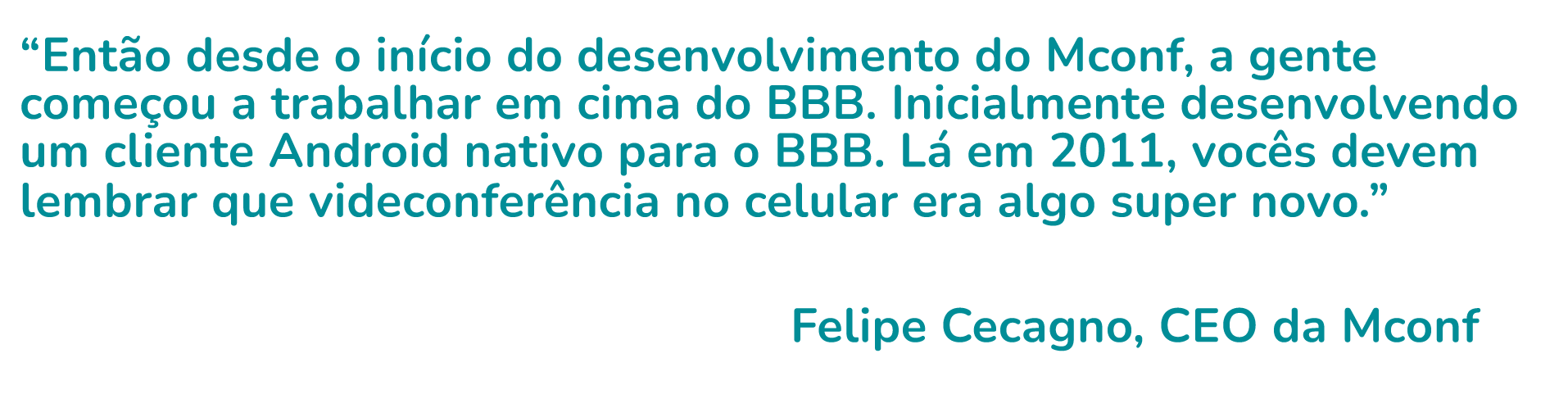 A aproximação entre a Mconf e o BigBlueButton começou lá em 2010, quando a nossa empresa ainda era um projeto acadêmico. No começo, optamos em olhar o que já existia no mundo em termos de open source relacionados a videoconferência, e assim encontramos o BigBlueButton.