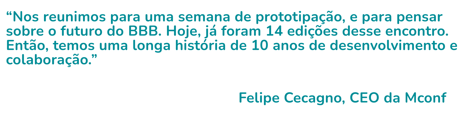 A relação de cooperação entre a Mconf e o BigBlueButton está consolidada há muitos anos. Durante esse período, inúmeras funcionalidades foram desenvolvidas, e aconteceram diversos encontros entre os times.