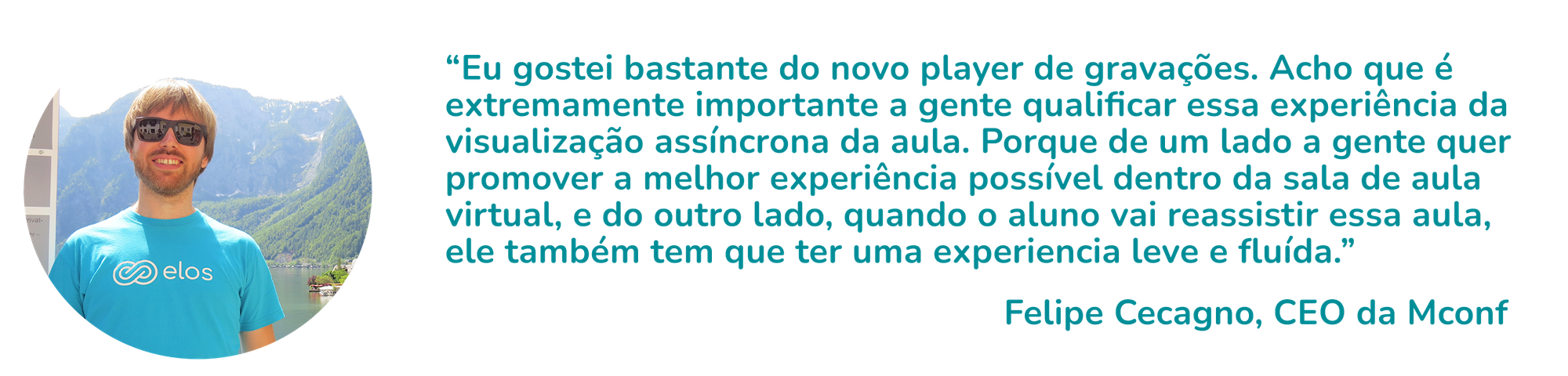 - Player de Gravação: essa funcionalidade nasceu de uma necessidade de solução para questões envolvendo o player antigo. Com essa atualização, o usuário agora pode buscar o conteúdo textual dentro da gravação para localizar um slide, além de poder acelerar o vídeo;