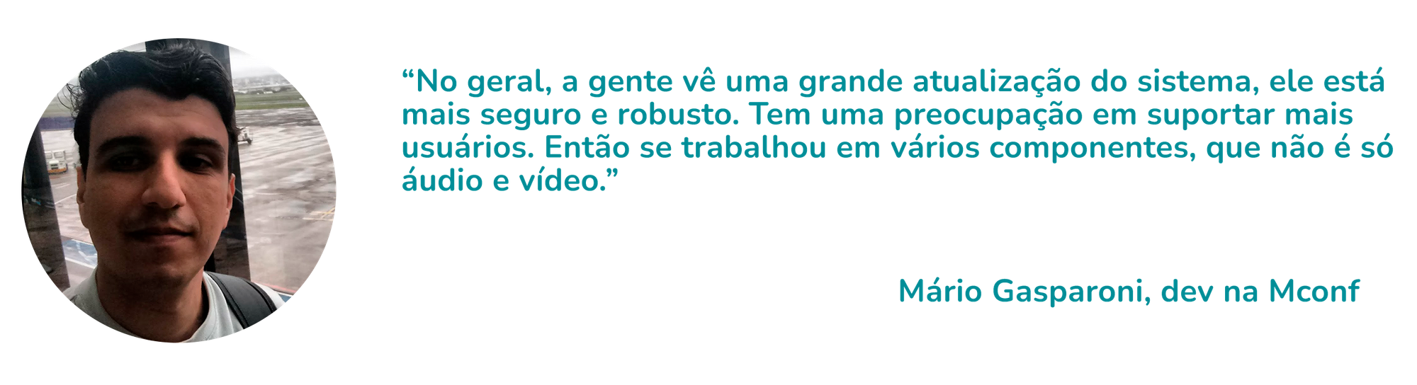 - Suporte Mobile: algumas modificações possibilitaram uma melhor adaptação do layout da videoconferência para dispositivos móveis;