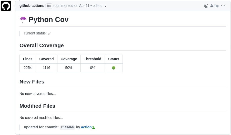 - https://github.com/marketplace/actions/python-cov